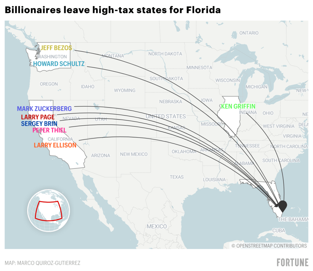 The billionaire exodus from the West Coast to Florida is underway as the ultra-wealthy seek refuge from wealth taxes in states like California and Washington.